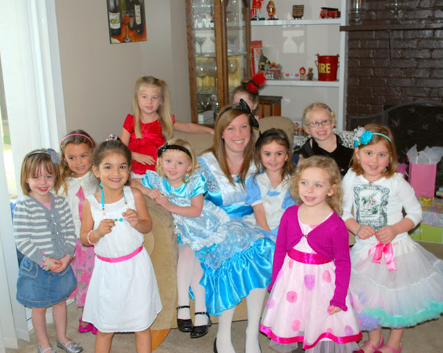 This was the first year that we let Leila completely choose the guest list for her party. She knew that she only wanted girls, but (and this is a direct quote) "Daddy can stay if he dresses up." And being the fun daddy he is, he did! Tony found a green jacket and cummerbund from the goodwill and made a top hat out of cardboard and felt! Gianna was a little Queen of Hearts (dress by )