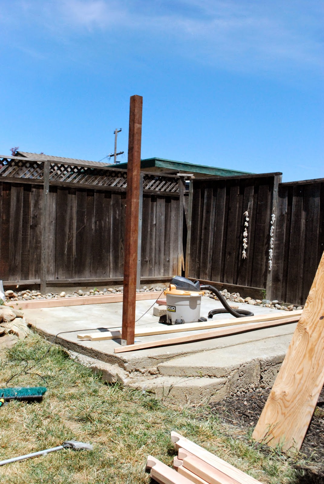 When my husband and I bought our house five years ago, it had a fun bamboo shaded area in the back right corner of the yard. It wasn't great to look at, but it served it's purpose. Well, after a nasty storm a year ago (the construction was baaaaad) here's what our shaded area looked like: