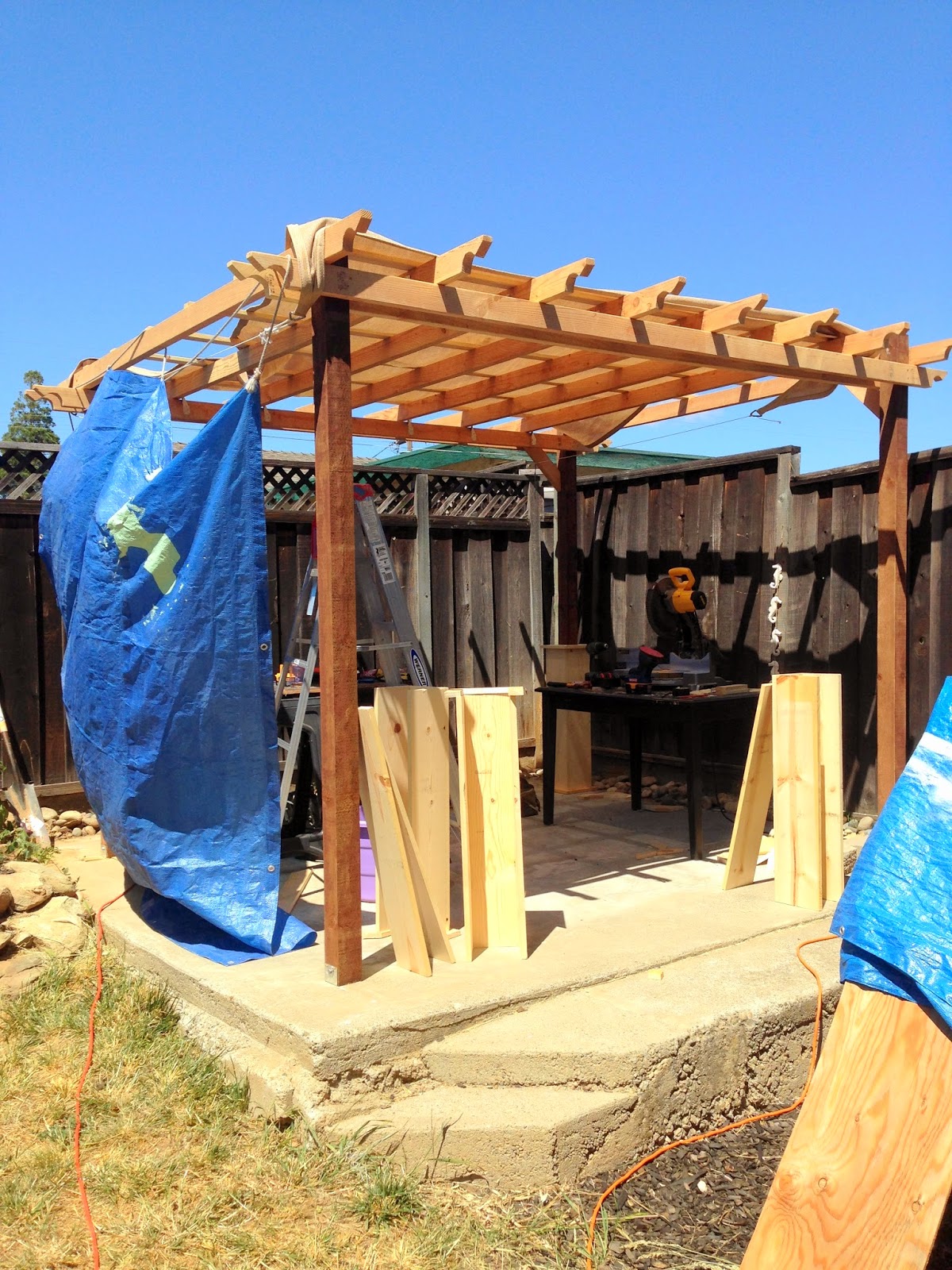 And we've planted jasmine in all four corners. The hope is that eventually enough of it will grow up and outward across the top to provide some decent shade. For now we've got a shade tarp up there, and it's doing a great job, but it's not as pretty, nor does it smell as good as jasmine!