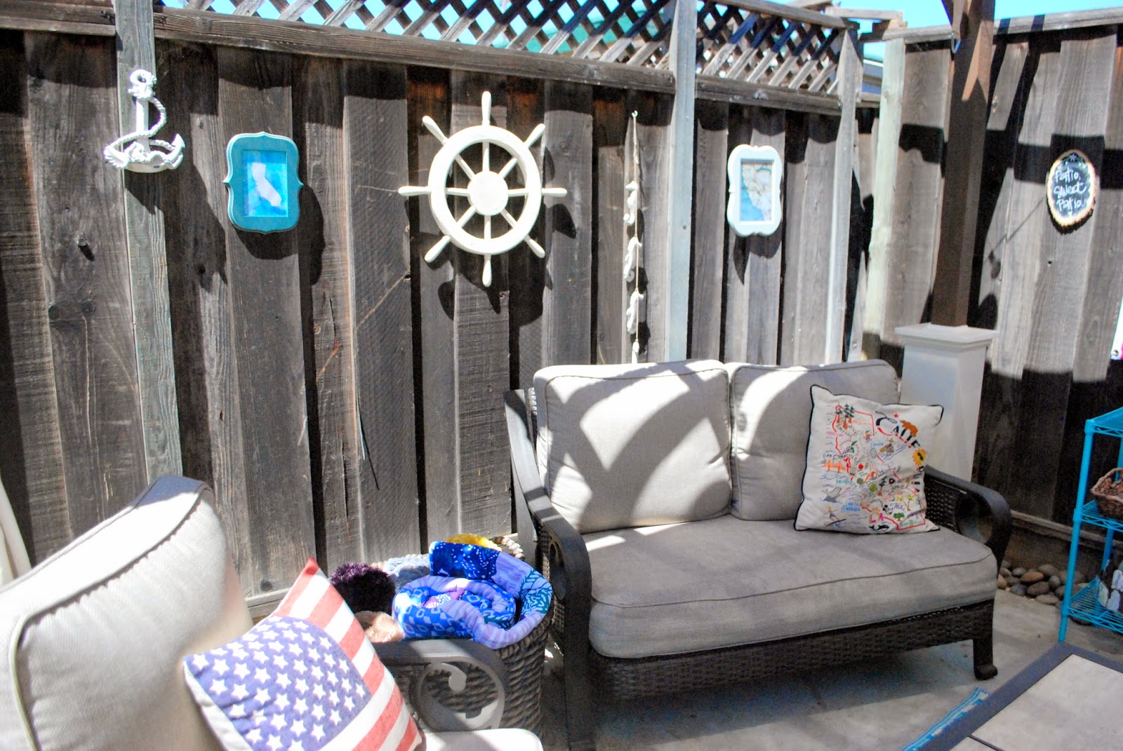 This outdoor living space is my happy place. It's where we have our morning coffee, lounge in the afternoon reading books or magazines, sit down and chat about dreams of our future, and where we sit to watch the kids play. We entertain friends and family here, and just love it.