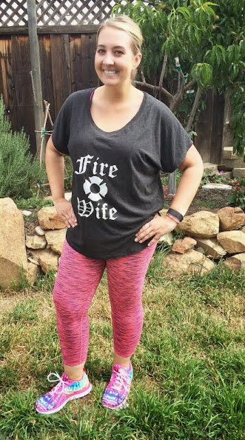 Here I am sporting some Fabletics pants, with an old shirt that used to fit tight. Old tees are another thing I like to wear working out, but they're not my favorite because they're not as breathable as some other favorites.