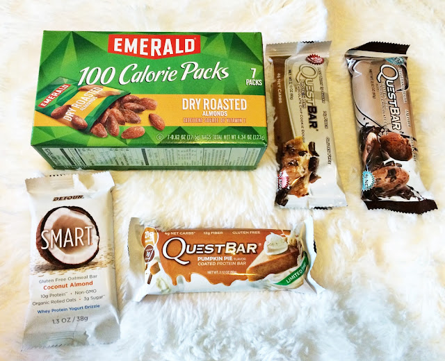 What is up with planes charging big bucks for crappy little snacks? $12 for a cheese plate? No thank you. I brought a box of individually packaged almonds and a bunch of protein bars. It might look like too many protein bars, but I figured my hubby would steal one or two. I was right. I highly prefer Detour Bars and Quest Bars. Both are super clean, and high in protein which keeps you full, longer.