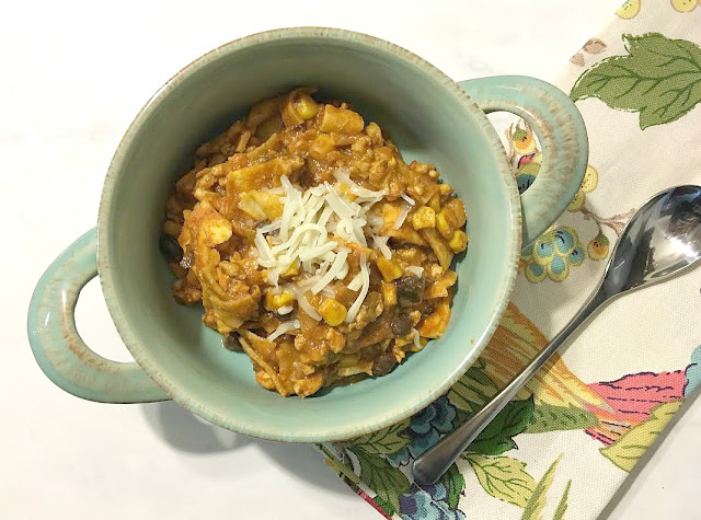 As soon as the weather gets chilly I want warm, comfort food. If I had to choose a favorite type of comfort food it would be Mexican, specifically enchiladas. I love the flavors and the cheesy goodness. Most of my favorite enchilada recipes are super high in fat, but after experimenting with a handful of different "one pan" recipes - substituting this for that, adding this, taking out that, etc. I eventually came up with my own recipe that my whole family loves.